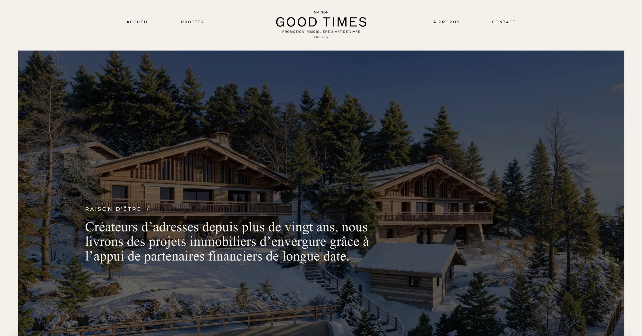 Maison Good Times creates luxury second homes designed for unforgettable moments with family and friends. With 20+ years of experience, they develop high-end properties in prime locations like the French Alps, Portugal, and Brazil, blending tradition with modern design.